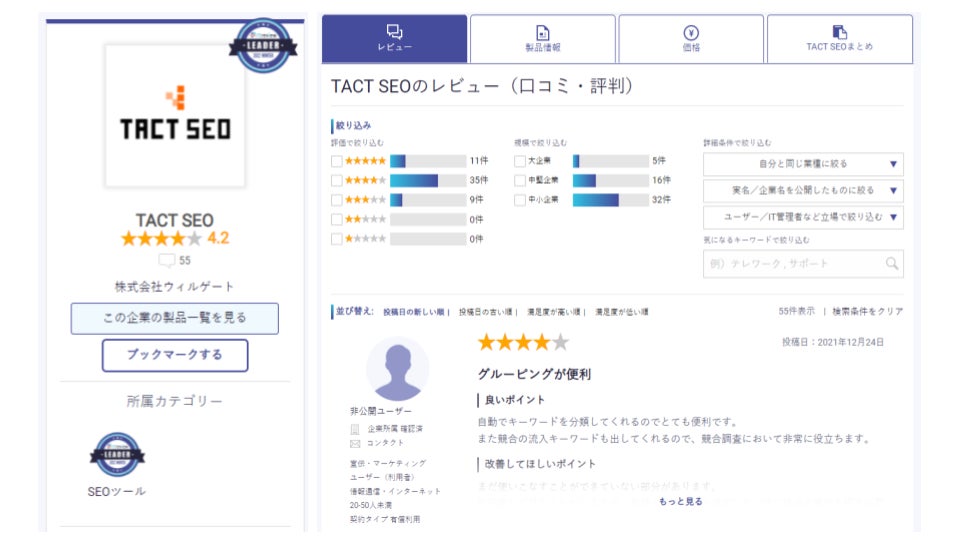 「ITreview」掲載、口コミ評価URL:https://www.itreview.jp/products/tact-seo/reviews